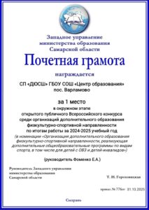 Хотим поделиться радостной новостью! Структурное подразделение «ДЮСШ» ГБОУ СОШ «Центр образования» пос. Варламово стало победителем окружного этапа Всероссийского конкурса среди организаций дополнительного образования физкультурно-спортивной направленности по итогам работы за 2924-2025 учебный год.